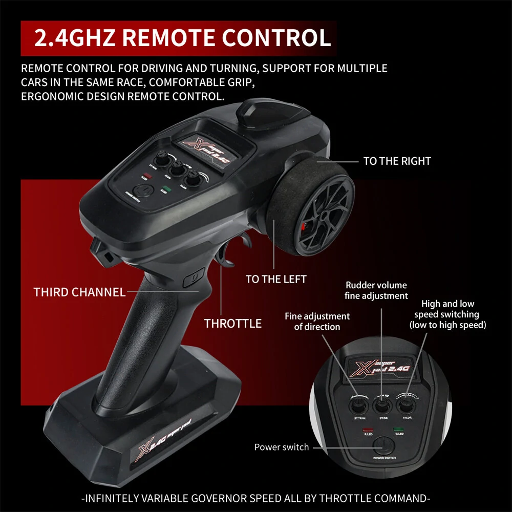 Der S910 überzeugt durch rasanter Beschleunigung, hohe Endgeschwindigkeit und ein extrem reaktionsfreudiges Fahrverhalten. Ideal für Hobbyfahrer, Einsteiger und erfahrene Racer.