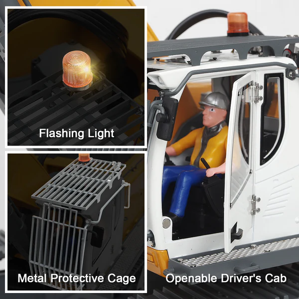 Vollmetall-Karosserie und Ausleger/Arm für realistisches Gewicht, hohe Haltbarkeit und gute Grableistung