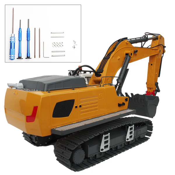 Der Kabolite K5901-100S ist die nächste Entwicklungsstufe des Modells, das früher als Huina 1599 bekannt war. Er ist auf einem robusten Vollmetall-Chassis mit Gummiketten aufgebaut und bietet realistische hydraulikähnliche Bewegungen, präzise Multi-Kanal-Steuerung und austauschbare Werkzeuge für ein echtes Baustellen-Erlebnis.