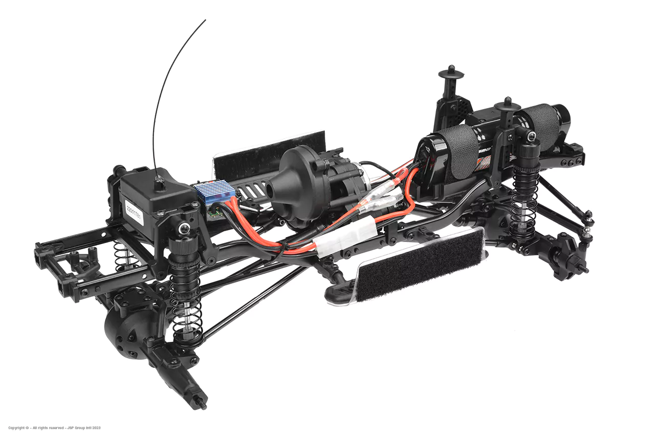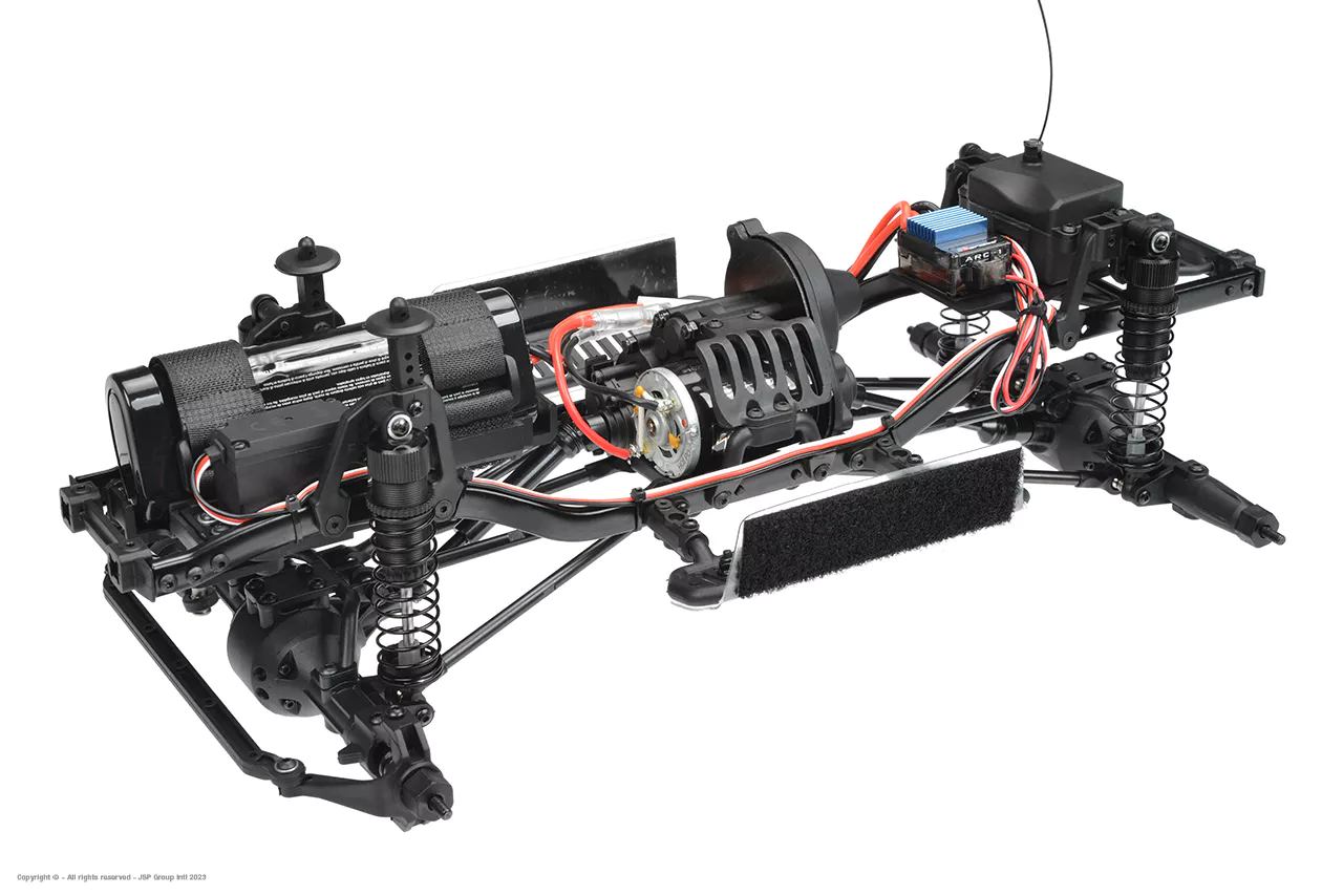 Das Gen 2-Design mit CMS-Halterung und nach vorne versetzter Batterie sorgt für eine Gewichtsverteilung auf der Vorderseite, die das Crawling optimal unterstützt und die Bereitschaft für intensive Action garantiert. Das typische Problem der Drehmomentverdrehung, das bei allen wellengetriebenen Rigs auftritt, wurde mit dem ATT (Anti Torque Twist Transmission) auf geniale Weise gelöst. Dieses innovative Getriebe verringert die Auswirkungen von Drehmomentverdrillung, indem es gegenläufige Rotationen in den zentralen Antriebssträngen induziert, die Verdrehung eindämmt und die Traktion in kritischen Momenten erhöht. Dies führt zu einer gleichmäßigeren Leistung auch bei maximaler Gasannahme und verbessert die Stabilität und Vorhersehbarkeit des Fahrzeugs beim Rock Crawling.