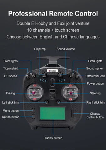 Eine Funkfernbedienung ermöglicht es Ihnen, alle Funktionen des Kipplasters präzise und einfach zu steuern.