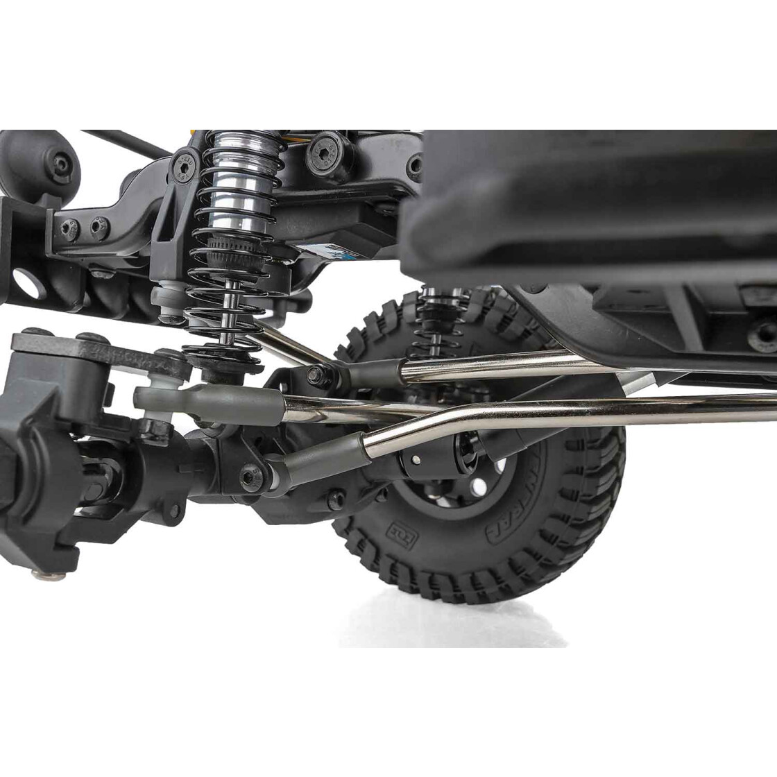 - BTA-LENKUNG UND ALUMINIUM-LENKPLATTEN: Die Lenkung hinter der Achse sorgt für einen besseren Böschungswinkel, mehr Freiraum und eine saubere Optik. Die Factory Team High-Clearance-Lenkhebel bieten mehr Spielraum beim Überwinden von Felsen und unwegsamem Gelände.