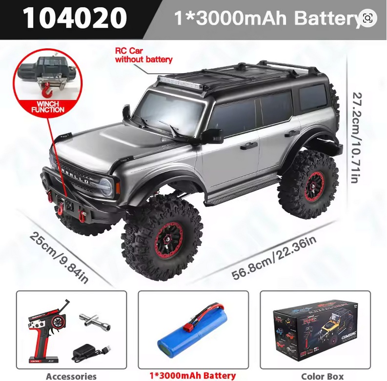 NEU!! Der WLtoys 104020 Profi - RC 2,4G 4WD 1/10 Crawler in Silber jetzt in der "upraded Version" mit elektrischer Winde.