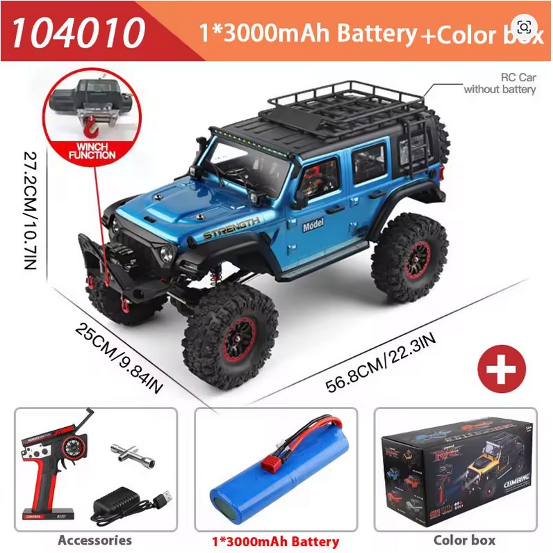 NEU!! Der WLtoys 104010 Profi - RC 2,4G 4WD 1/10 Crawler in Blau jetzt in der "upraded Version" mit elektrischer Winde.