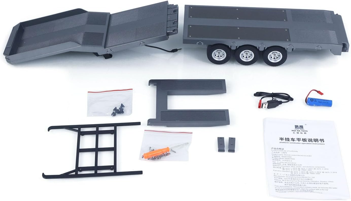 3 Achs-Kunststoff-Sattel anhänger Flach bett 1502 für 1/18 Fernsteuerung Traktor LKW HUINA 1501 RC LKW-Modell Upgrade-Teile
