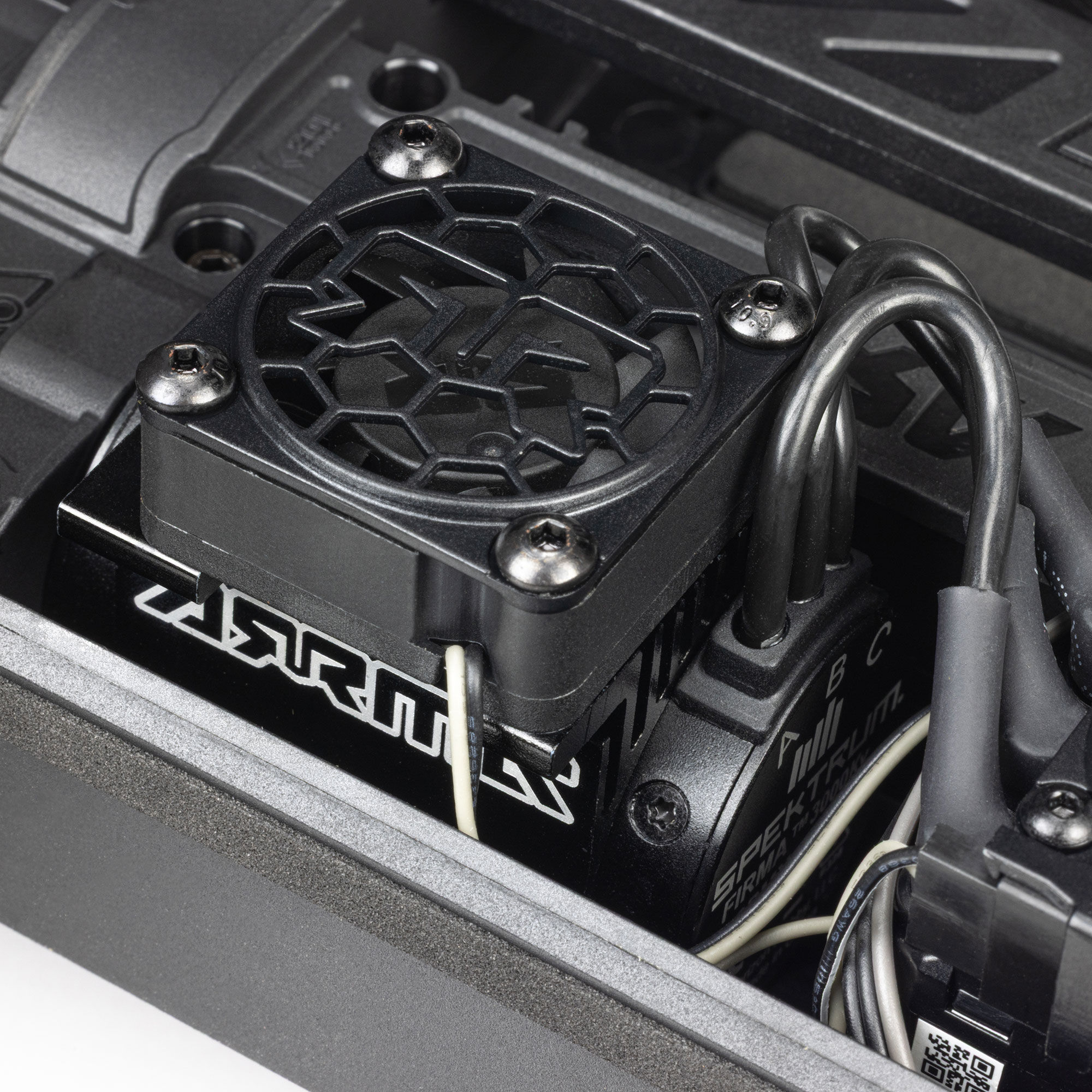 Der geschlossene Antriebsstrang mit robusten Metallgetrieben bringt Kraft vom verbauten Spektrum Brushless Motor auf alle vier Geländeräder und Reifen für hohe Traktion. Das gesamte Stromsystem ist für zuverlässige Leistung auf jedem Terrain gut geschützt.