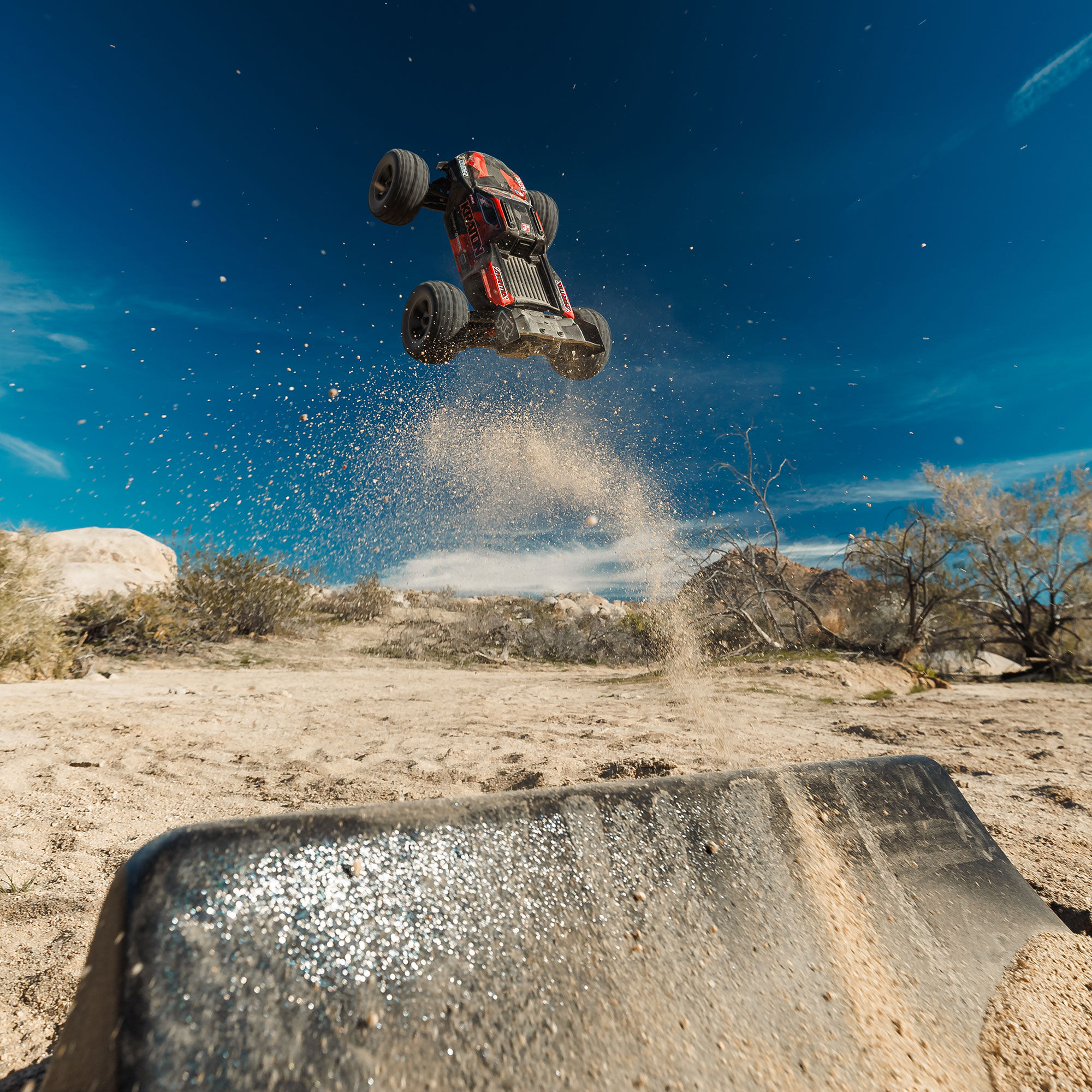 Setzt ein paar Rampen. Schneiden Sie neue Linien. Beanspruchen Sie Ihr Territorium. Der ARRMA MINI KRATON 3S BLX 4X4 bietet Ihnen alles, was Sie brauchen, um eine große Aufregung aus einer Halbschuppe zu schaffen. Bringen Sie Ihr 3S LiPo mit und entdecken Sie, wie viel Ärger ein kompaktes Geschwindigkeitsmonster aufwirbeln kann.