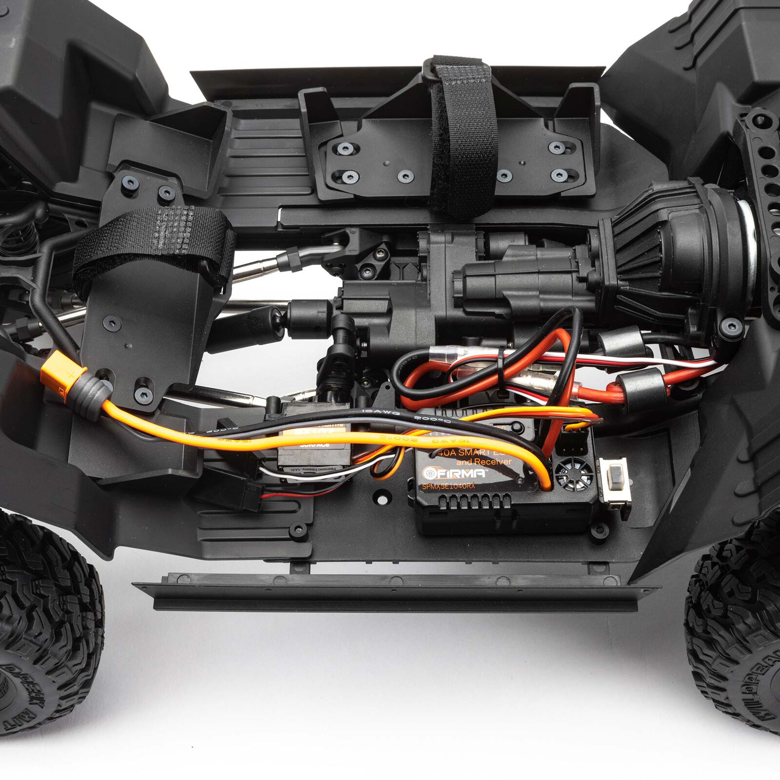 - Servos: Wasserdichtes Spektrum S614 Metallgetriebe-Lenkservo (15kg) und ein SX107 Micro-Servo für die Dig-Funktion.