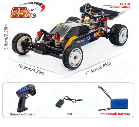 Erlebe echten Rennspaß im Miniaturformat! Der WLtoys 244016 V2 ist ein leistungsstarker 2WD Highspeed-Rennwagen im Maßstab 1:24 – perfekt für Einsteiger und ambitionierte Hobbyfahrer. Dank integriertem Gyroskop, vollproportionaler Steuerung und drei Geschwindigkeitsstufen bietet dieses Modell präzise Kontrolle und Fahrspaß auf höchstem Niveau.