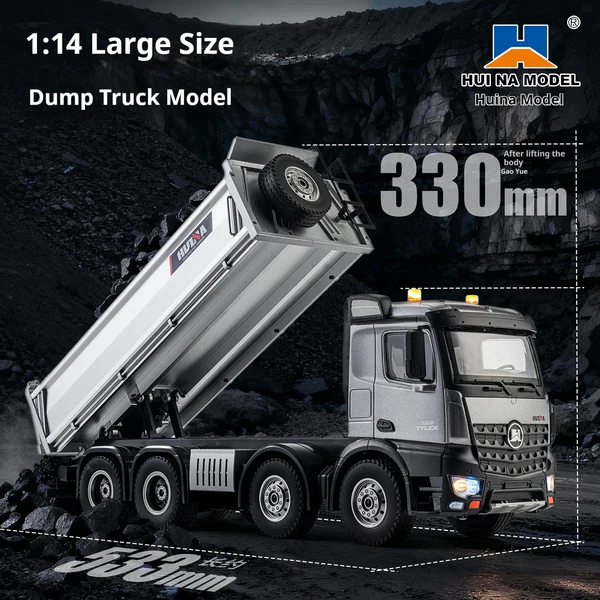 Erlebe mit dem Huina 1536Pro realistischen Baustellen-Spaß in beeindruckender Größe! Dieser robuste 1:14 Scale Muldenkipper überzeugt mit 12-Kanal-Fernsteuerung, echter Muldenfunktion und vielen coolen Features, die jedes Kind (und viele Erwachsene) begeistern.
