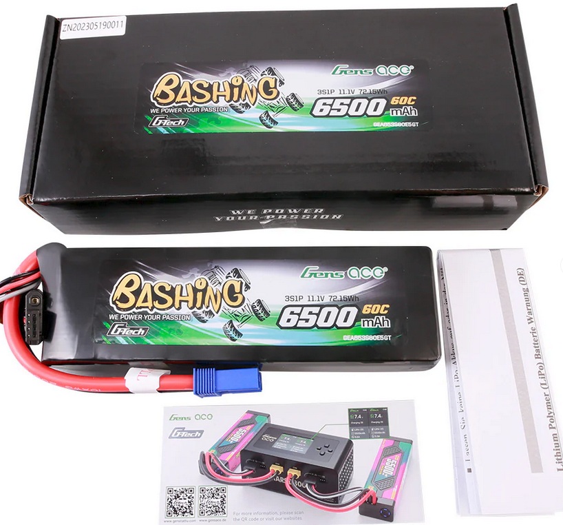 Weiterführende Links zu "Gens Ace 3S 6500mAh 11,1V 60C G-Tech Lipo Akku mit EC5 Bashing-Serie-Copy"