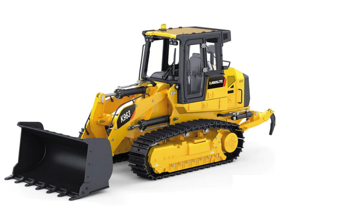Mit einem Kettenantrieb und einer stabilen Konstruktion kann der Raupenlader verschiedene Geländearten und Hindernisse bewältigen.